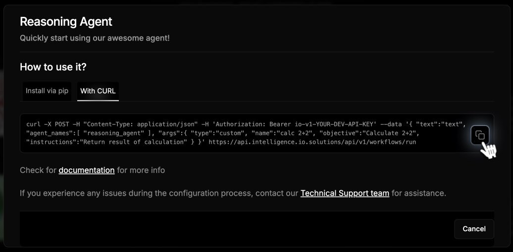 - Use the following cURL example to start using your selected AI Agent: