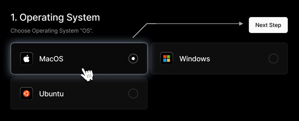 Choose the Operating System “OS” of your device from MacOS, Windows or Ubuntu.