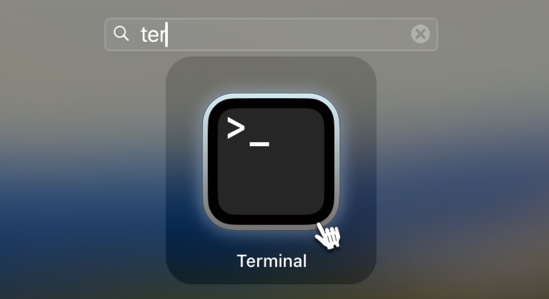 Click the Launchpad icon in the Dock, start typing “Terminal” in the search field, then click the Terminal icon:
