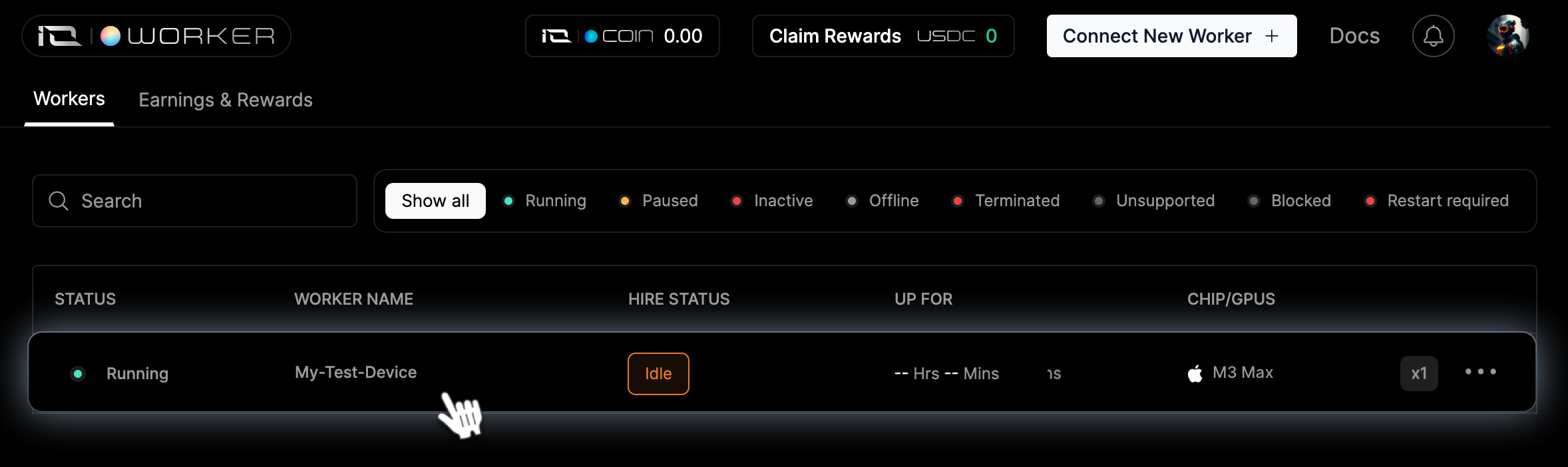 Now that your Worker has been successfully created and is running, you can track its status on the Workers page.