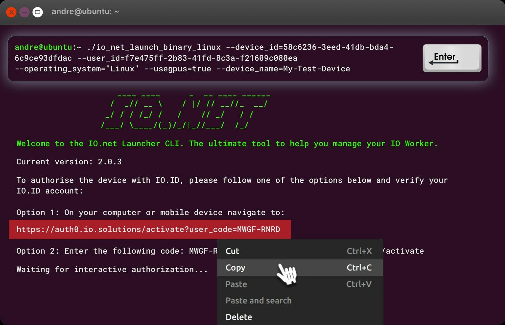 Install the desktop IO.NET Setup Script using the installation command in the Terminal: