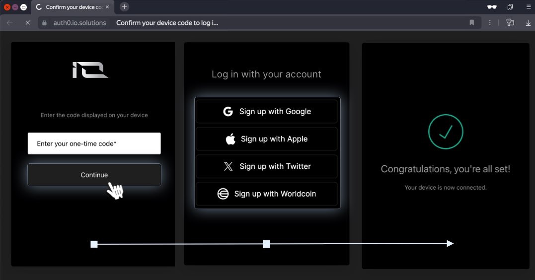 The IO Binary may prompt you to authorize your new device.Remember, you have 3 minutes to complete the authorization of the device. If you miss it, you will need to rerun the code again.