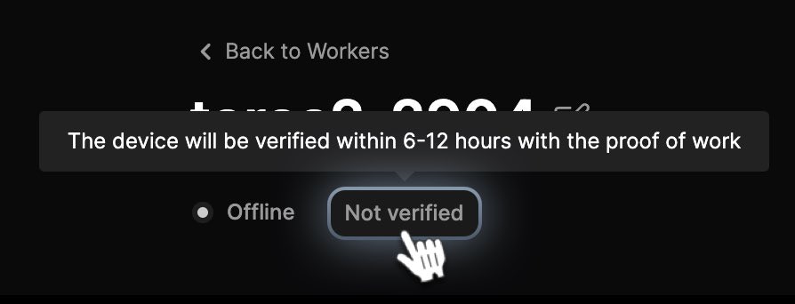 Proof-of-Work is a cryptographic puzzle that requires significant computational resources to solve. It’s easy to verify the authenticity of a GPU/CPU after they successfully solve the puzzle. Our PoW algorithm leverages an industry-standard approach to verify computational resources, similar to the approaches used in cryptocurrencies such as Ethereum, prior to its Proof-of-Stake upgrade, and Bitcoin.Why Is This Necessary?