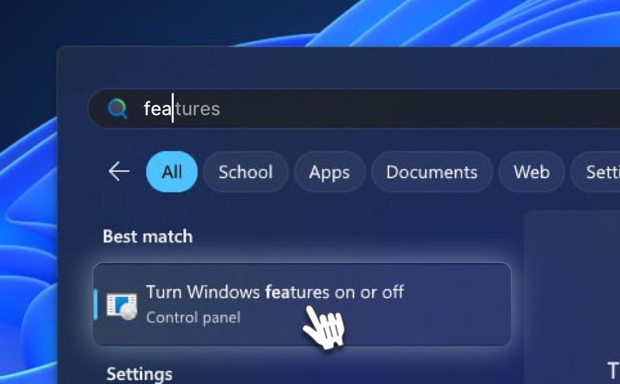 Enable Hyper-V Feature: Hyper-V is a virtualization technology tool that needs to be enabled in Windows. To check if Hyper-V is enabled, you can use the Windows Features dialog via Search: